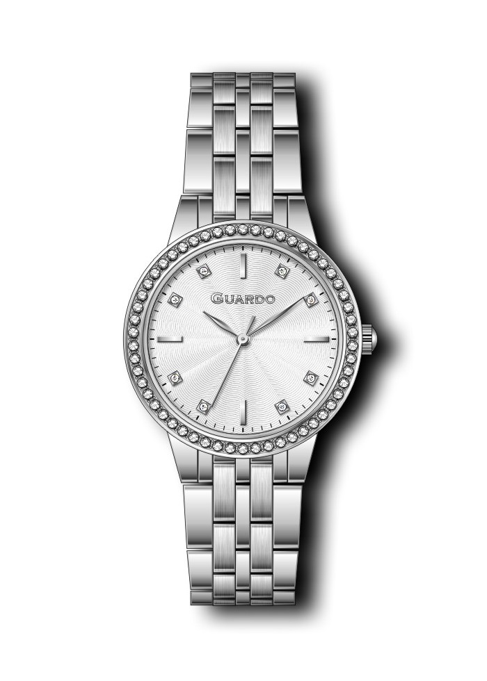 Guardo Premium WOMEN’s Watch Model 012774-1. Case material: Metal; Case size: 32 x 38.5mm. Case covering / color: Silver. Dial color: Silver. The watch is with Bracelet. Bracelet color: Silver. Bracelet material: Stainless Steel. Glass: Mineral. 3 ATM. The watch is being delivered in a Guardo branded gift box. GTIN/EAN: 5903814016388.